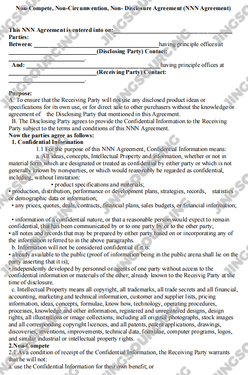 In a nutshell, for buyers, the NNN agreement just provides an additional layer of protection. The most important thing is to select a reliable Chinese supplier.